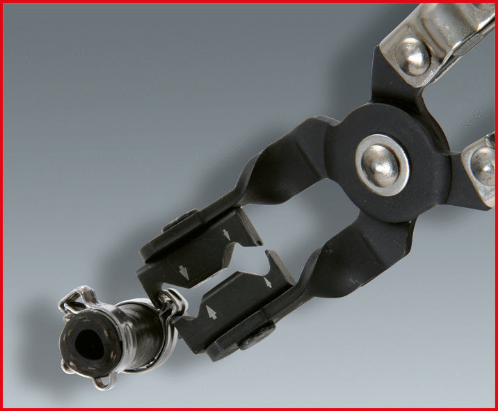 • pourvue de becs mobiles pour une utilisation sur colliers de serrage au niveau de tuyaux de carburant difficilement accessibles