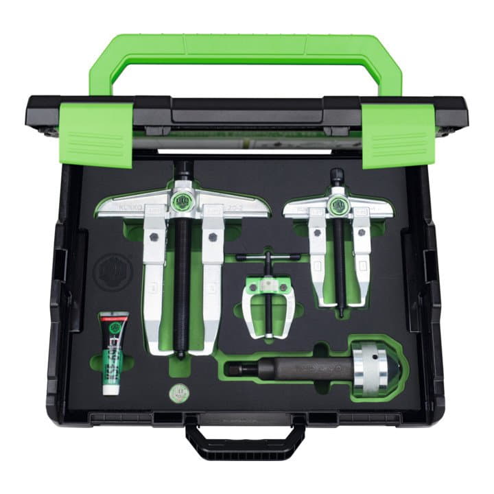 • Contenu: 8 extracteurs intérieurs de 12 à 70 mm, 2 potences de 5 à 40 mm et de 18 à 70 mm, 1 mandrin d’extraction, 1 extracteur de cosses de batteries 60 mm, 2 extracteurs à deux bras 90 et 160 mm