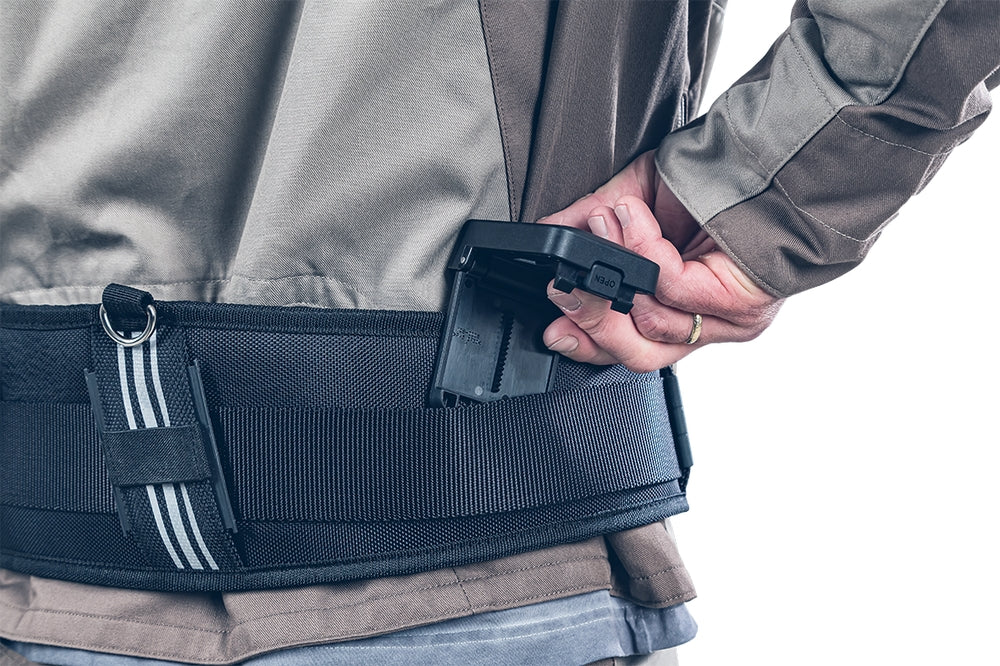 ProClick Tool Belt L : une ceinture ergonomique rembourrée qui se règle en continu et s'adapte parfaitement aux différentes morphologies. La fermeture rapide pratique à une main et le rembourrage confortable en font une ceinture idéale pour un confort de longue durée.