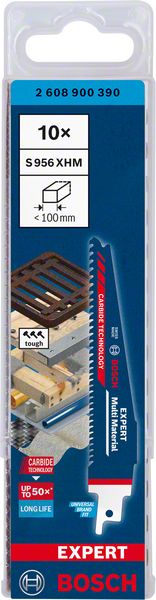 Technologie carbure Bosch pour une coupe durable des matériaux de construction tenaces - coupe le métal, le bois, les matières plastiques, les matériaux composites et les éléments préfabriqués utilisés sur les chantiers - pas de denture progressif pour couper indifféremment les matériaux fins et épais - convient à toutes les scies sabres à tige S