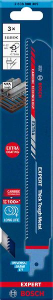 Lame de scie sabre BOSCH Expert Thick Tough Metal longueur 225 mm largeur 25 mm ( 4000837487 )