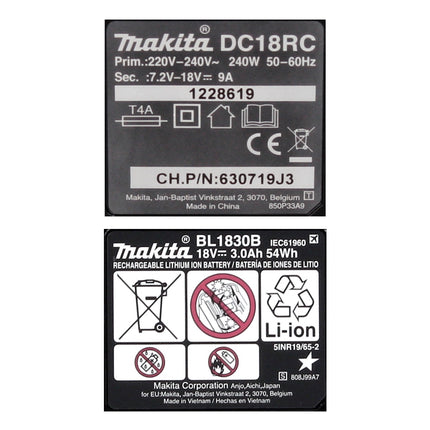 Makita BL1830B Batterie 3,0 Ah 18V + DC18RC Chargeur (191A24-4)