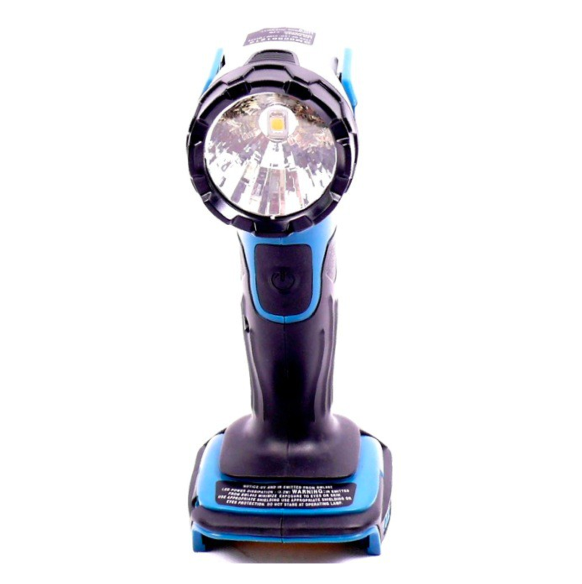 La lampe ultra-lumineuse est conçue pour un éclairage des zones de travail particulièrement difficiles d'accès. Elle est dotée d'une tête en aluminium réglable en 12 positions différentes et est compatible avec les batteries d'une puissance de 14,4 V et 18 V.