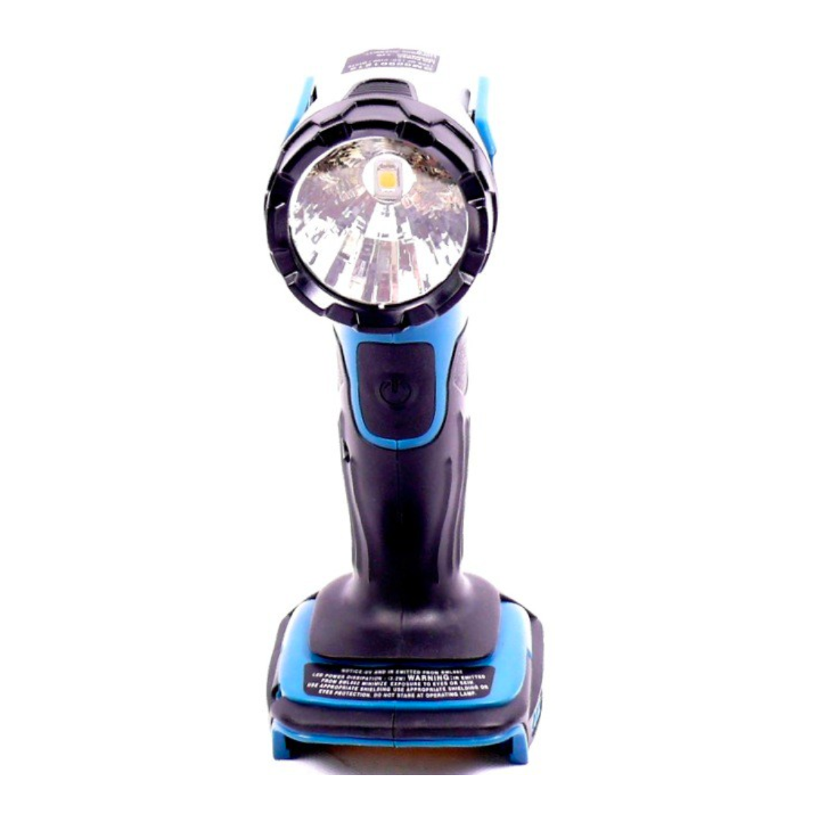 La lampe ultra-lumineuse est conçue pour un éclairage des zones de travail particulièrement difficiles d'accès. Elle est dotée d'une tête en aluminium réglable en 12 positions différentes et est compatible avec les batteries d'une puissance de 14,4 V et 18 V.
