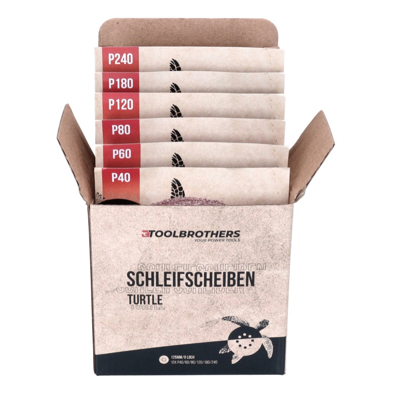 Makita BO5041J Ponceuse excentrique 125 mm 300 W + 4x Sets de ponçage Toolbrothers TURTLE