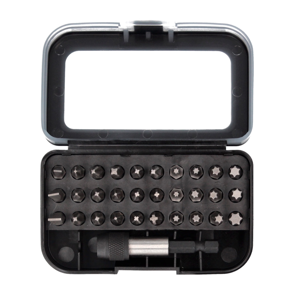 - 12x Embouts T 25 mm ( 2x T10 / 2x T15 / 2x T20 / 3x T25 / 2x T30 / 1x T40 )