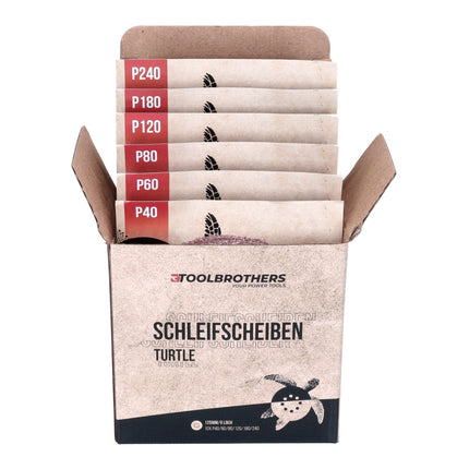 Makita DBO180RT1J Ponceuse excentrique sans fil 125mm 18V + 1x Batterie 5,0Ah + Chargeur + Coffret Makpac + Set de ponçage Toolbrothers TURTLE
