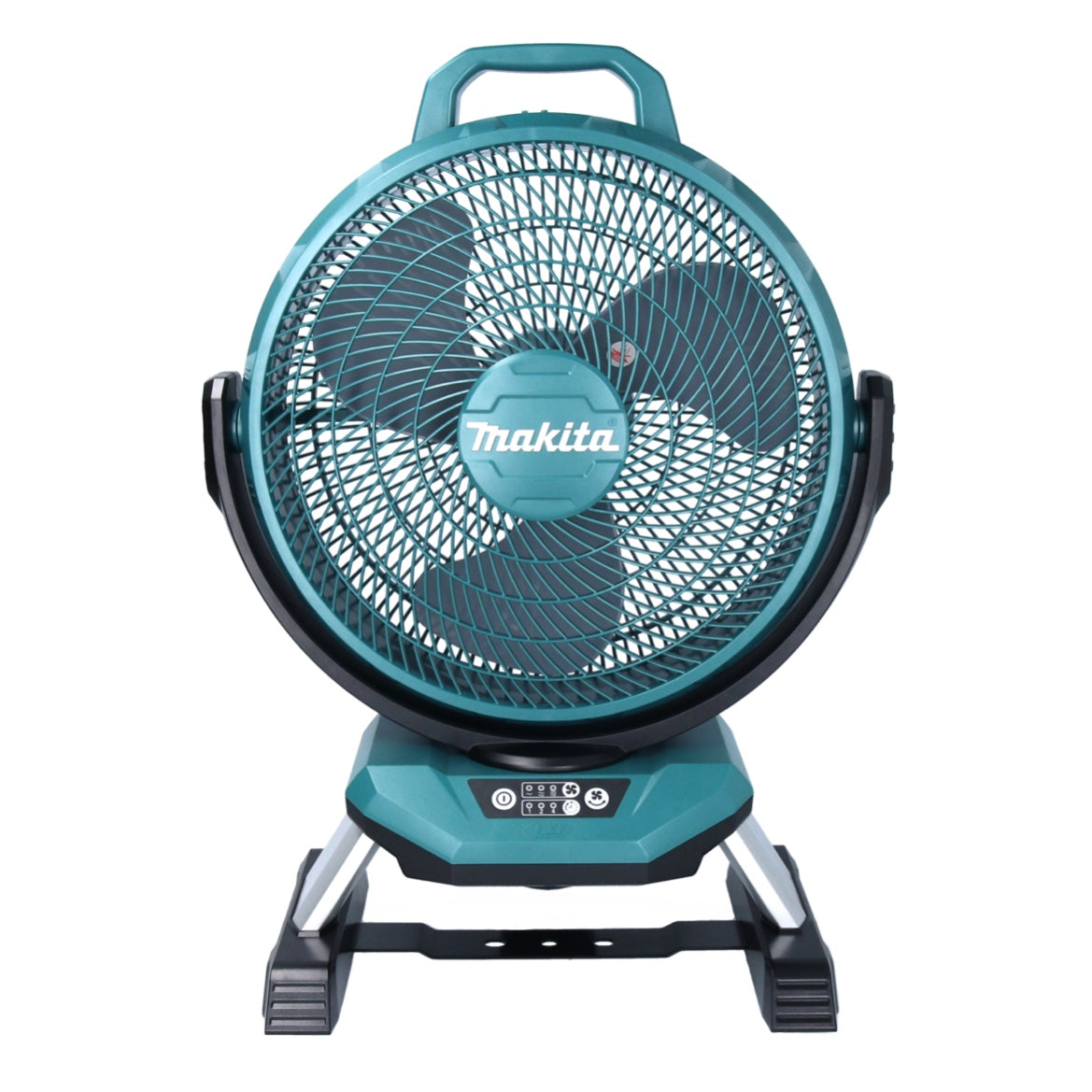 Le DCF 301 est un ventilateur à batterie puissant de la maison Makitas. Le flux d'air peut être réglé sur trois niveaux. De plus, le ventilateur pivote automatiquement de 45° vers la droite et la gauche et s'incline de 90° vers le haut et le bas. Avec une vitesse d'air maximale de 2,0 m/s, il permet de se rafraîchir même les jours de grande chaleur. Grâce à son grand pied, il peut également garantir une position stable sur des surfaces inégales. Le DCF 301 dispose d'un arrêt automatique par minuterie après 1, 2 ou 4 heures au choix. Le ventilateur sans fil peut également être utilisé avec un adaptateur secteur. Makita est un fabricant leader d'outils électriques qui se distingue surtout par la qualité de sa fabrication et son grand système de batteries 18 V.