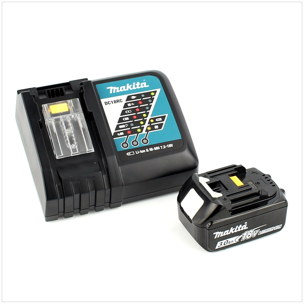 Makita DCL 180 B 18V Li-Ion Aspirateur compact sans fil Noir + 1x Batterie BL 1830 3,0 Ah + Chargeur rapide DC 18 RC