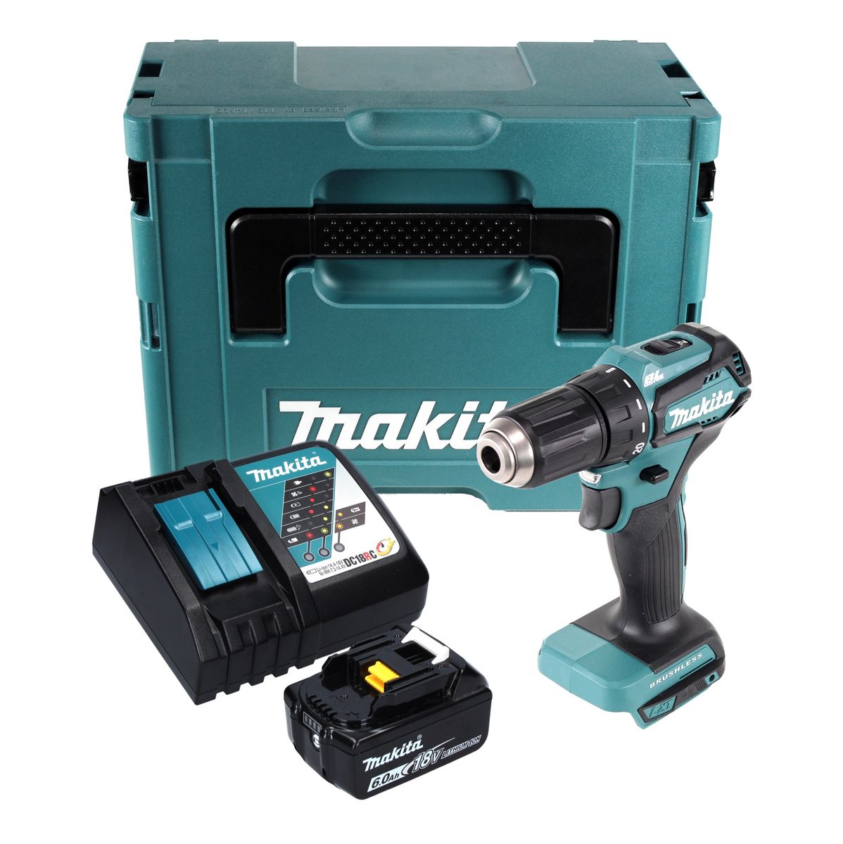 Makita DDF 483 RG1J Perceuse-visseuse sans fil 18 V, 40 Nm, Brushless + 1x Batterie 6,0 Ah + Chargeur + Coffret Macpac