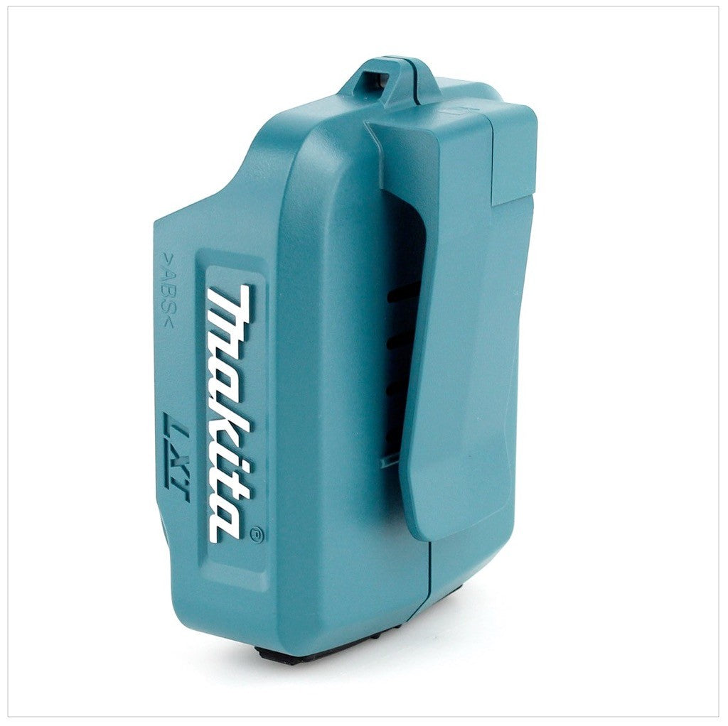 L'adaptateur USB très pratique du constructeur Makita est équipé de deux ports USB pouvant être utilisés pour recharger de multiples appareils (tablettes ou smartphones, etc.). Il est compatible avec toutes les batteries 14,4 V et 18 V de Makita. Il est doté d'un clip ceinture qui facilite son tranport.