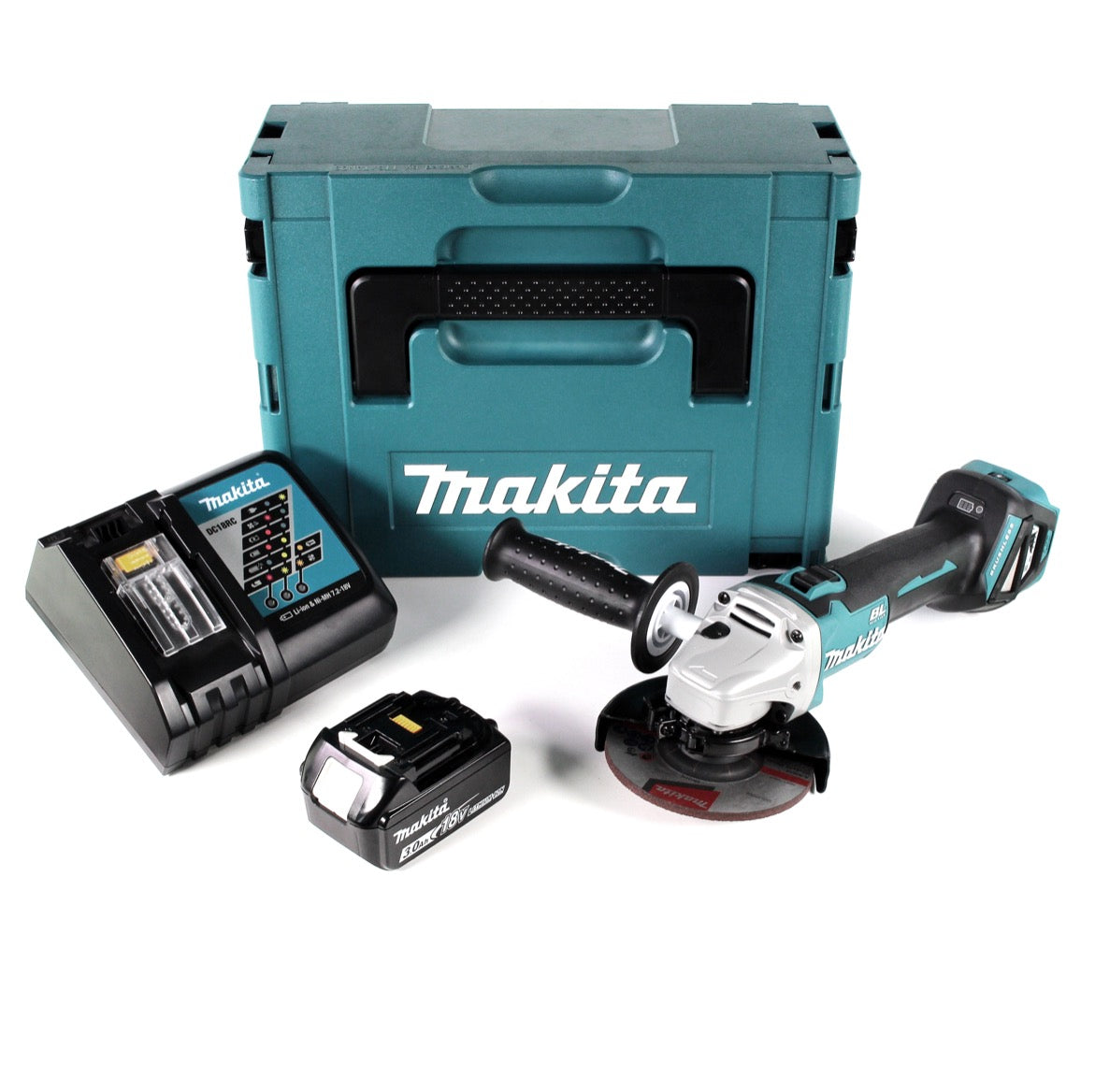 Makita DGA 511 RF1J Meuleuse d'angle sans fil 18V 125mm Brushless + 1x Batterie 3,0Ah + Chargeur + Coffret Makpac