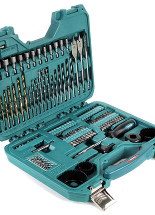 La perceuse à percussion Makita DHP 482 avec engrenage planétaire entièrement en métal à 2 vitesses et engrenages en métal est équipée d'un puissant moteur à courant continu à 4 pôles. Le tournevis a également un réglage de couple de 21 fois plus un réglage de perçage supplémentaire et une fonction d'impact. La technologie XPT (eXtreme Protection Technology) protège la machine de la poussière et des projections d'eau, ce qui augmente sensiblement la durée de vie du tournevis. De plus, la perceuse à percussion convainc par sa lumière LED intégrée pour éclairer la zone de travail, le frein moteur électronique et le mandrin sans clé de 13 mm. Le DHP 482 est livré avec 2 batteries et un chargeur. Tout est dans le pratique Makita Makpac. De plus, un jeu d'embouts et de forets Makita s100 pièces est fourni. Cela ne laisse rien à désirer. Avec un total de 50 embouts dans 4 supports différents, une gamme de perceuses, clés à douille, scies cloches et quelques pièces spéciales, vous trouverez toujours le bon accessoire dans le P 90249.
