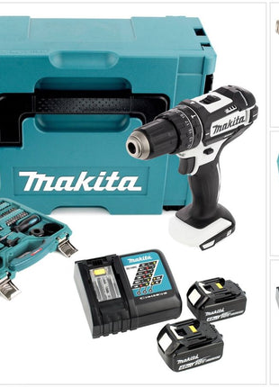 - 1x perceuse à percussion sans fil Makita DHP 482 W 18 V Li-Ion blanc
