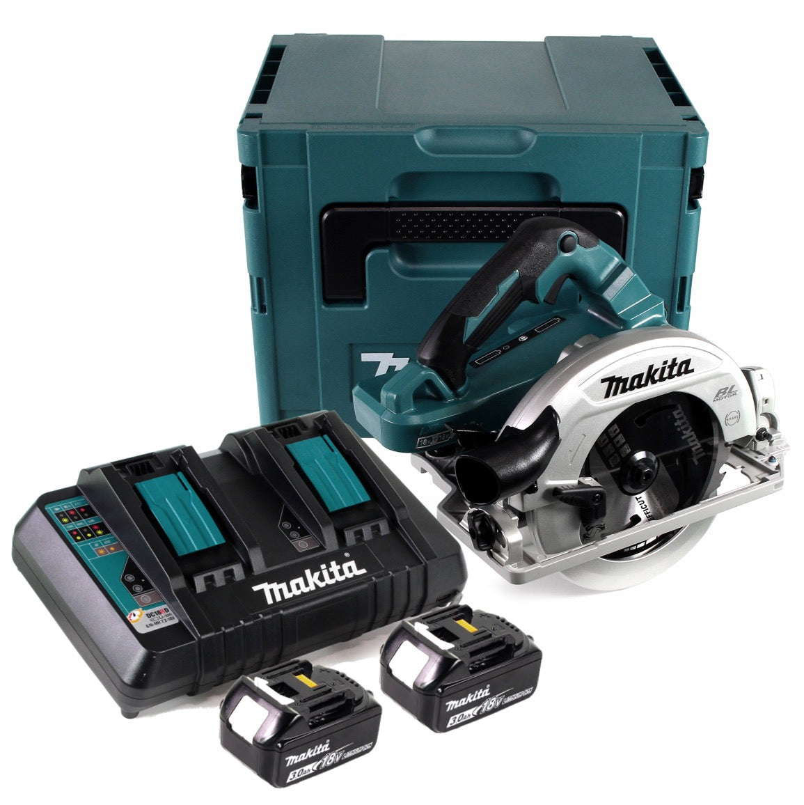Makita DHS 782 PF2J Scie circulaire portative sans fil 36V (2x18V) 190 mm Brushless en Makpac + 2x 3,0 Ah batterie + double chargeur