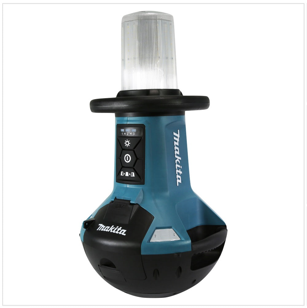 Le DML 810 de Makita est un projecteur LED auto-redressable fonctionnant au choix sur batterie ou sur secteur. Il dispose d'un système d'auto-équilibrage qui lui permet de se redresser tout seul s'il tombe. Le projecteur peut être allumé à 3 intensités différentes, à savoir 5500 / 3000 / 1500 lumens. De plus, l'orientation peut être réglée à 360°, 180° à gauche et 180° à droite. Une autre caractéristique est sa construction résistante à la poussière et à l'eau, qui permet une utilisation dans les conditions des chantiers. Les poignées pratiques assurent une manipulation aisée. Makita est un fabricant leader d'outils électriques, qui se distingue par une large gamme de produits 18 V et une qualité de fabrication élevée.