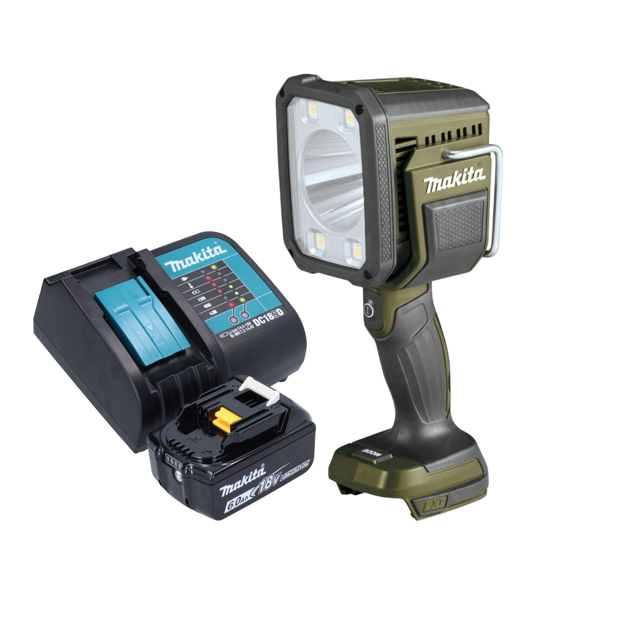 Makita DML 812 SG1 Projecteur portatif sans fil 18 V 1250 lm LED Olive Grn Outdoor Adventure Edition spéciale + 1x batterie 6,0 Ah + chargeur