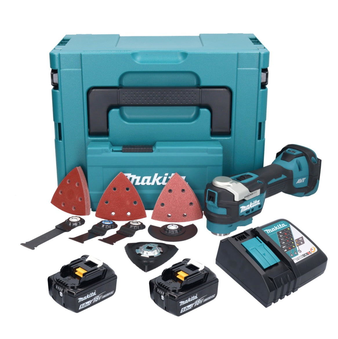 Makita DTM 52 RTJX4 Outil multifonctions sans fil 18 V Starlock Max Brushless + 2x batterie 5,0 Ah + chargeur + kit accessoires + Makpac