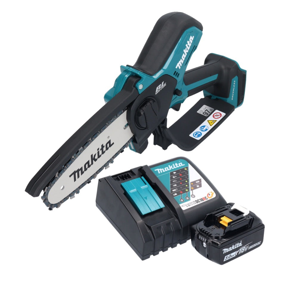 Makita DUC 150 RT01 Tronçonneuse sans fil 18 V 15 cm Brushless + 1x batterie 5,0 Ah + chargeur