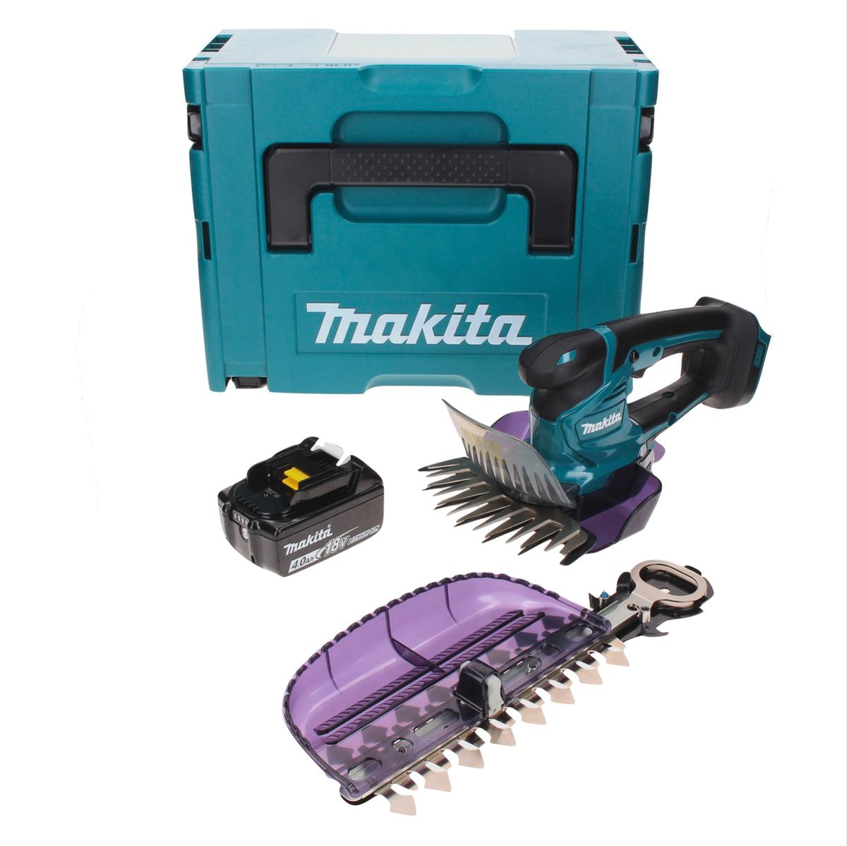 Cisaille à gazon sans fil Makita DUM 604 M1XJ 18 V avec lame pour taille-herbe et arbustes + 1x batterie 4,0 Ah + Makpac - sans chargeur