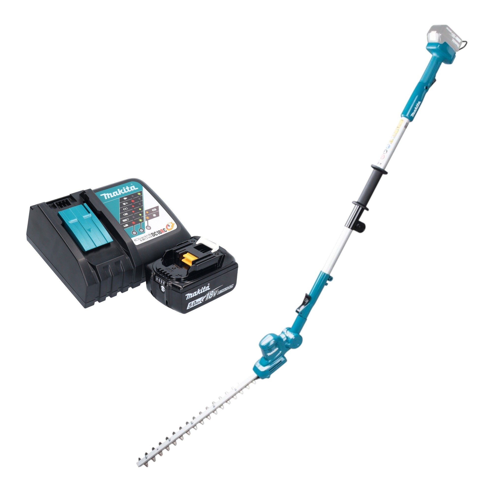 Le taille-haies sans fil Makita DUN 461 WZ est un outil puissant et flexible, spécialement conçu pour des coupes de haies précises et efficaces. Entraîné par une batterie de 18 V, le moteur atteint une vitesse de rotation à vide de 3.600 min-1 et assure ainsi des coupes rapides et nettes. Avec une longueur de coupe de 46 cm et une épaisseur de branche maximale de 18 mm, ce taille-haies est adapté aux types de haies les plus divers. Une caractéristique remarquable du Makita DUN 461 WZ est la lame de coupe réglable sur 135° en 10 positions (vers le haut 60°, vers le bas 75°), qui permet une adaptation flexible aux différents angles de coupe. Le manche télescopique sans outil offre une grande portée et rend l'utilisation d'un escabeau superflue, ce qui augmente la sécurité et l'efficacité du travail. Grâce à son faible poids total de seulement 3,3 kg, le taille-haies est confortable à manipuler, même lors d'une utilisation prolongée. Le fonctionnement sur batterie permet un démarrage immédiat, fonctionne sans émissions et réduit considérablement l'entretien. De plus, l'appareil est équipé d'une protection contre les décharges profondes qui éteint automatiquement l'appareil lorsque la batterie est presque vide afin d'éviter tout dommage. La XPT (Extreme Protection Technology) offre une protection optimale contre la poussière et les projections d'eau, de sorte que le Makita DUN 461 WZ fonctionne de manière fiable même dans des conditions difficiles. Dans l'ensemble, ce taille-haies sans fil offre une combinaison de puissance, de flexibilité et de facilité d'utilisation qui en fait un outil idéal pour l'entretien professionnel et exigeant des haies.