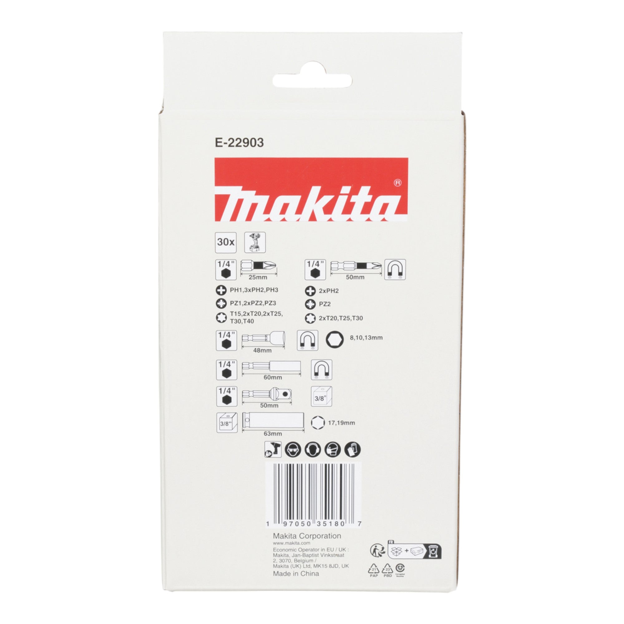 Makita E-22903 Jeu d'embouts et de douilles à frapper 1/4'' / 3/8'' 30 pces IMPACT BLACK Embouts / Douilles à frapper / Douilles à emboîter