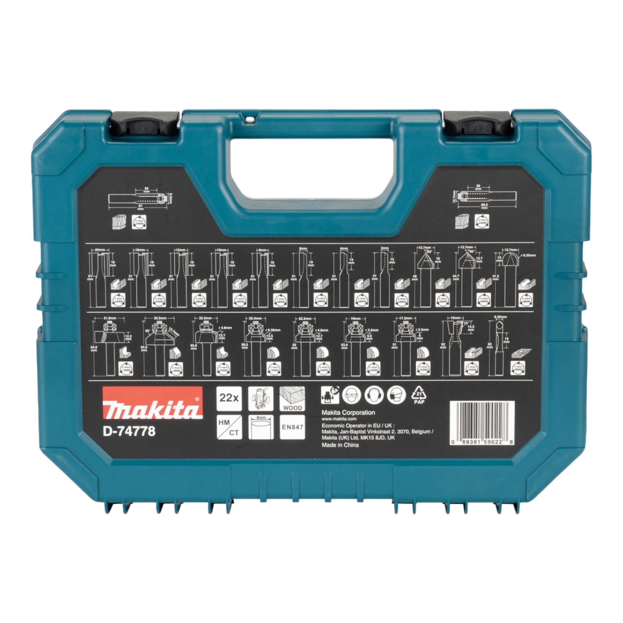 Makita Frser Set ( D-74778 ) 22 pcs. 8 mm tige pour la construction de meubles, la menuiserie, l'ébénisterie et le bricolage