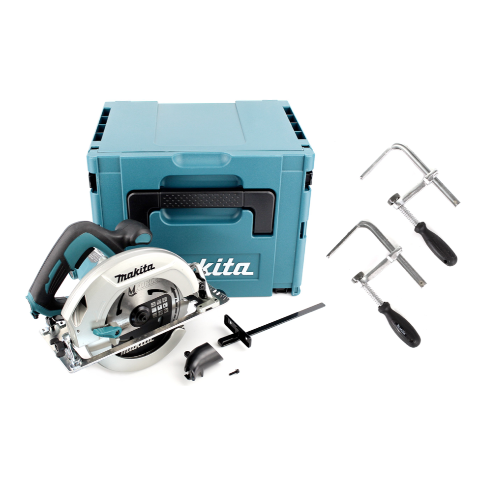 Makita HS 7601 J 190 mm Scie circulaire 1200 W + Lame de scie + 2x Pinces à vis + Makpac