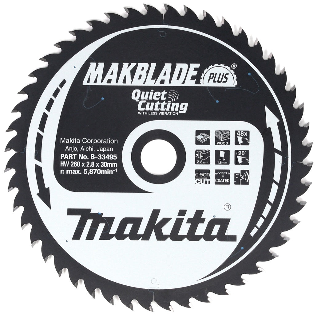 Makita MAKBLADE Lame de scie circulaire pour bois 260 x 30 x 2,8 mm, 48 dents ( B-33495 )