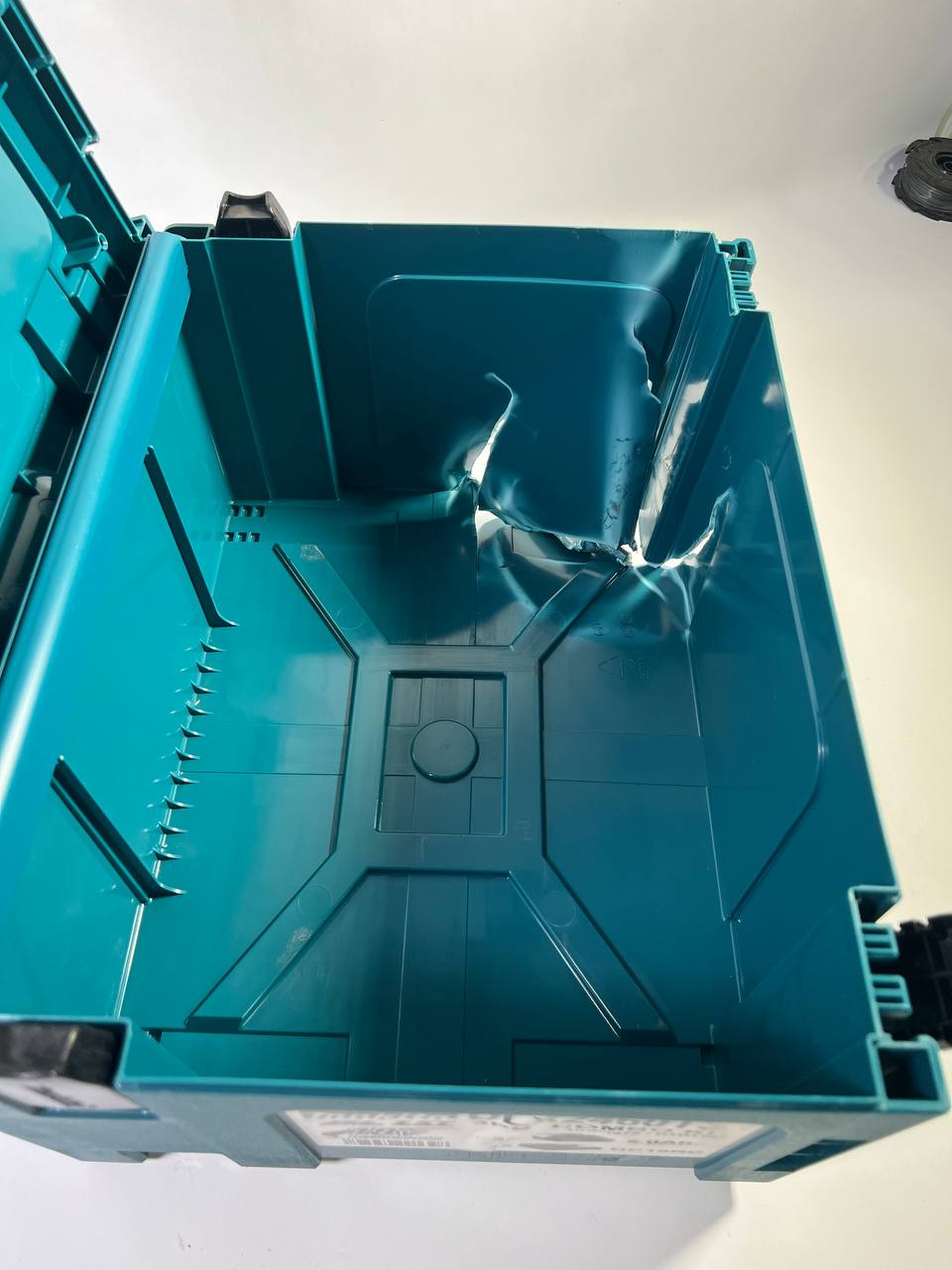 Le coffret MAKPAC 3 de Makita est très robuste et peut être équipée d'un insert (non inclus dans la livraison). Il est équipé de deux verrous à pression et d'une poignée de transport.