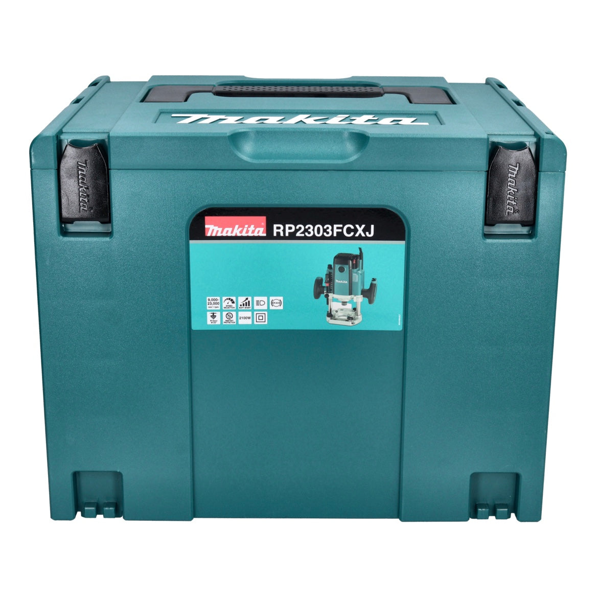 Makita RP 2303 FCXJ Défonceuse 2100 watt 70 mm stroke + stop + 30 pcs. tool set jeu de fraises + Makpac
