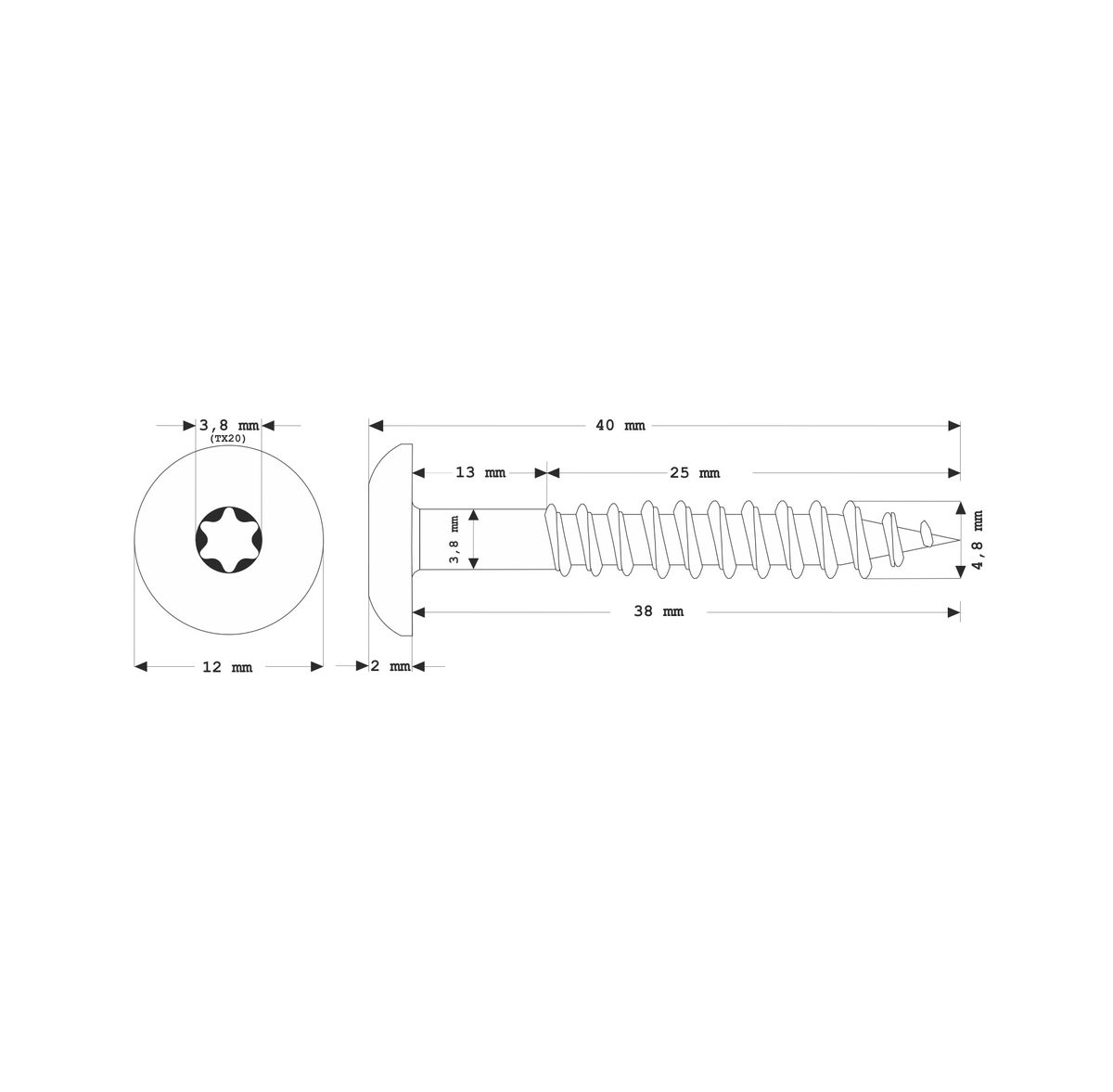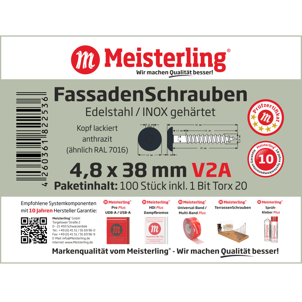 Meisterling Vis de façade 4,8x38 mm - 100 pièces (010020000211) tête plate 12 mm anthracite + Filetage partiel Torx en acier inoxydable V2A