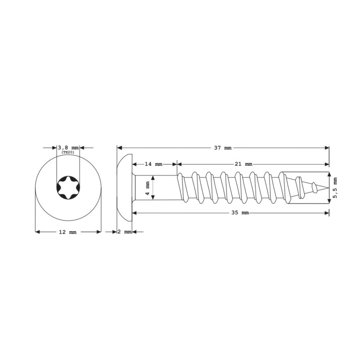 Diamètre de la tête : 12 mm