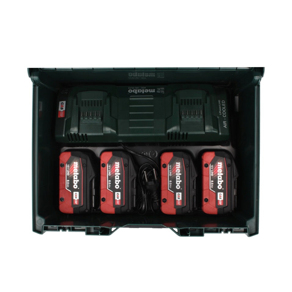 Kit de base Metabo 18 V LiHD + 4x batteries 8,0 Ah + chargeur ASC 145 DUO + ​​metaBOX