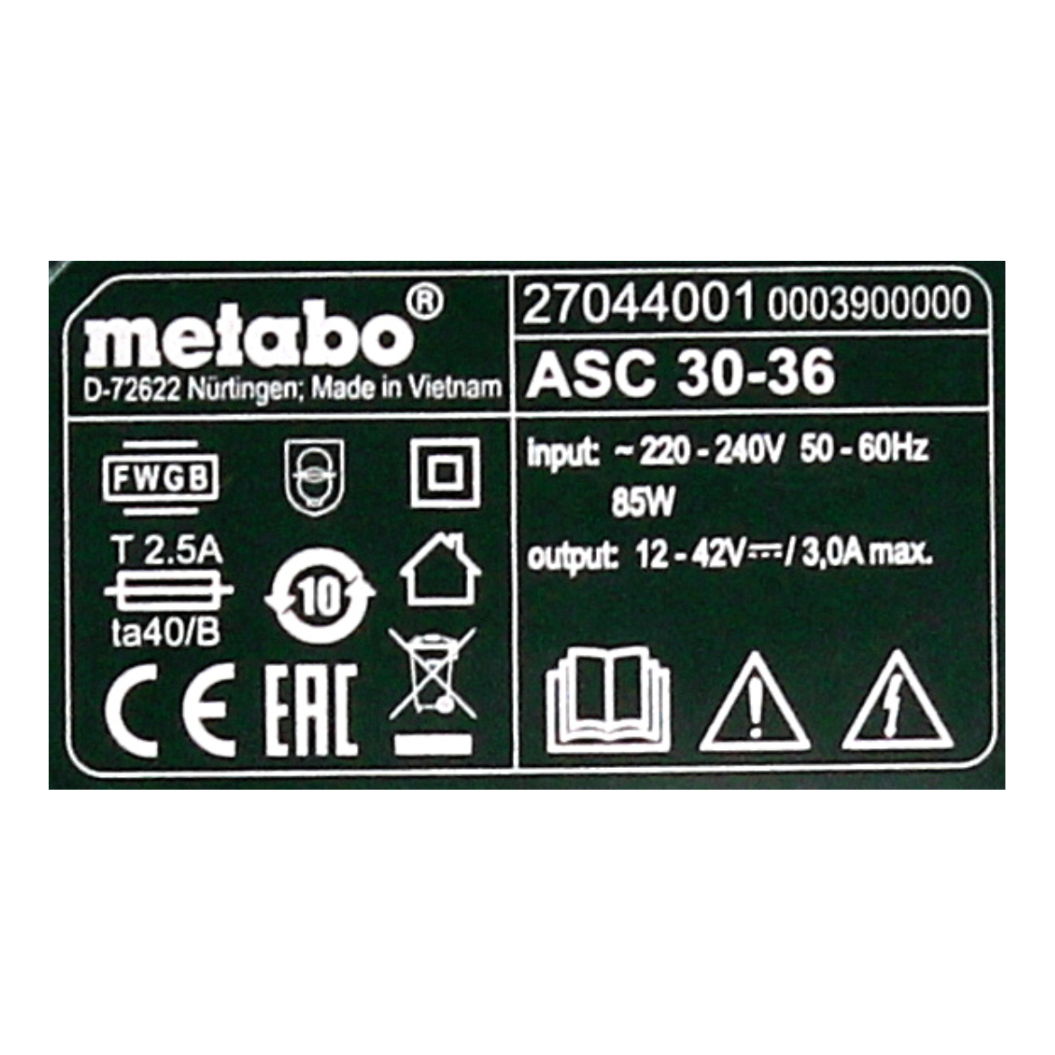 Metabo ASC 30-36 V AIR COOLED Chargeur 14,4-36V ( 627044000 )