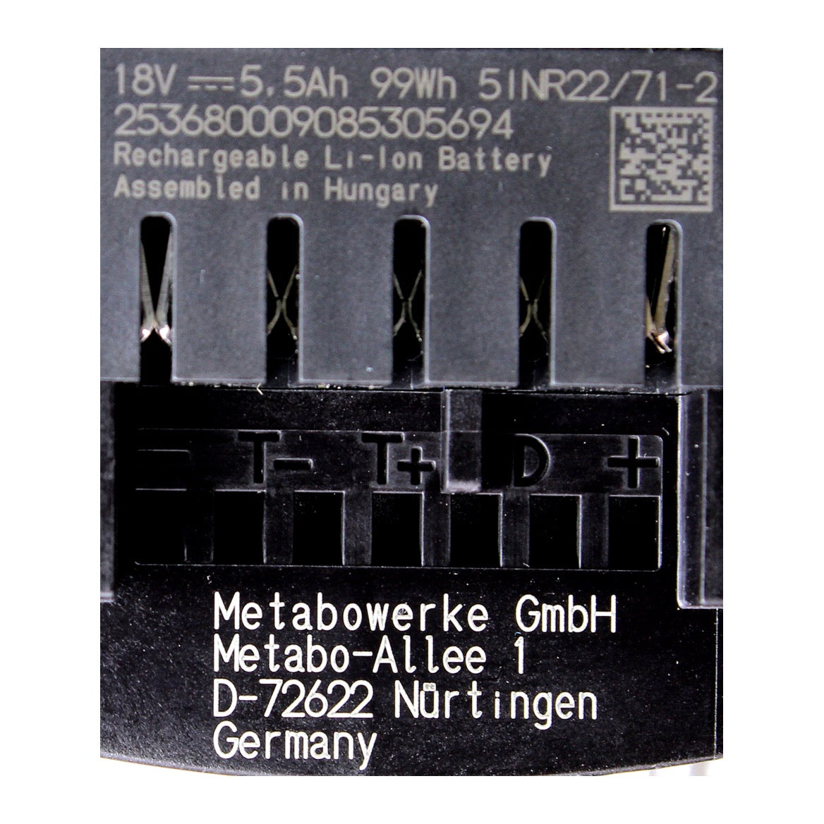- 2x Batteries Metabo LiHD 5,5 Ah (625368000)