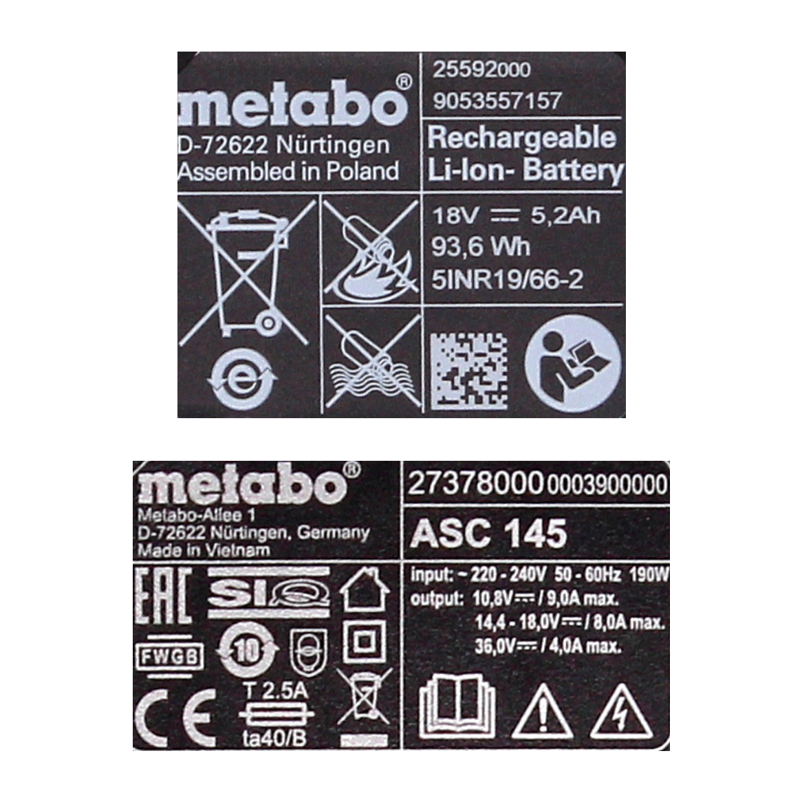 Metabo Basis Set 18V - 3x Batteries 5,2Ah + Chargeur ASC 145 ( 685048000 )