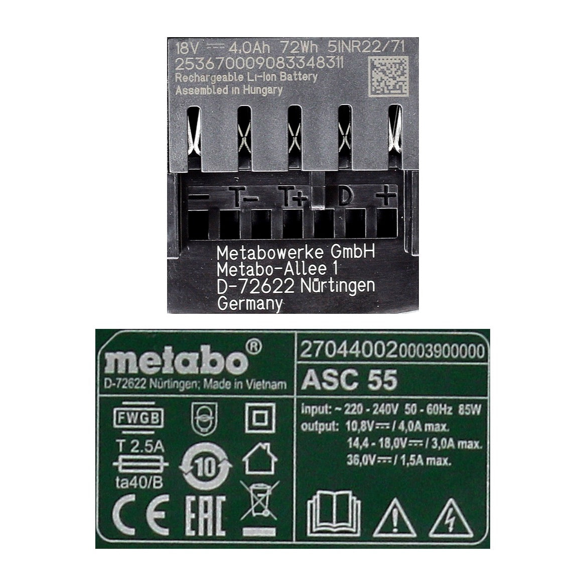 Metabo Kit de base 18V - 2x Batteries LiHD 4.0Ah + Chargeur ASC 55 ( 685163000 )