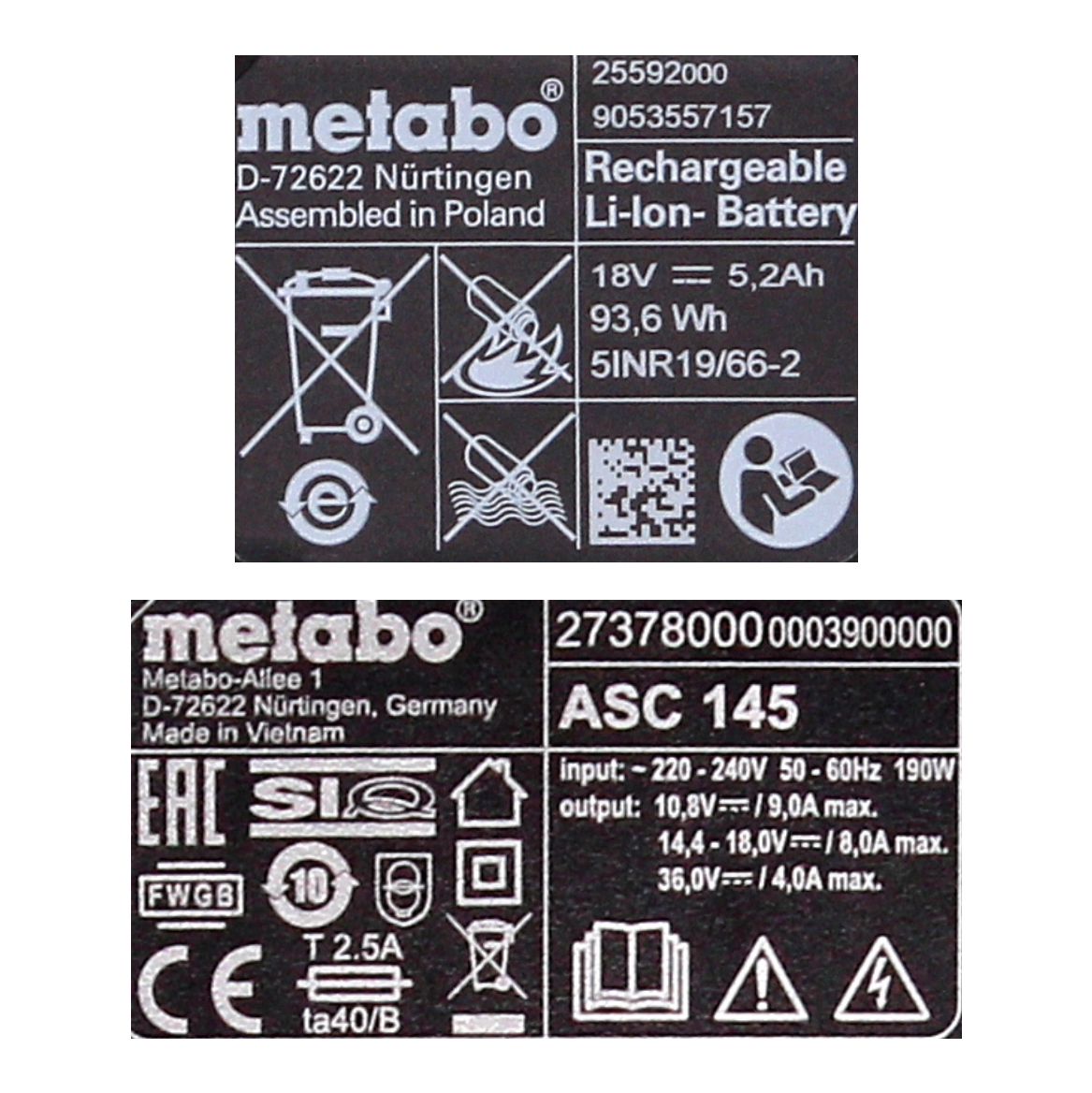 Metabo Kit de base sans fil 18V avec 2x batterie 5,2Ah + chargeur ASC 145 ( 685051380 )