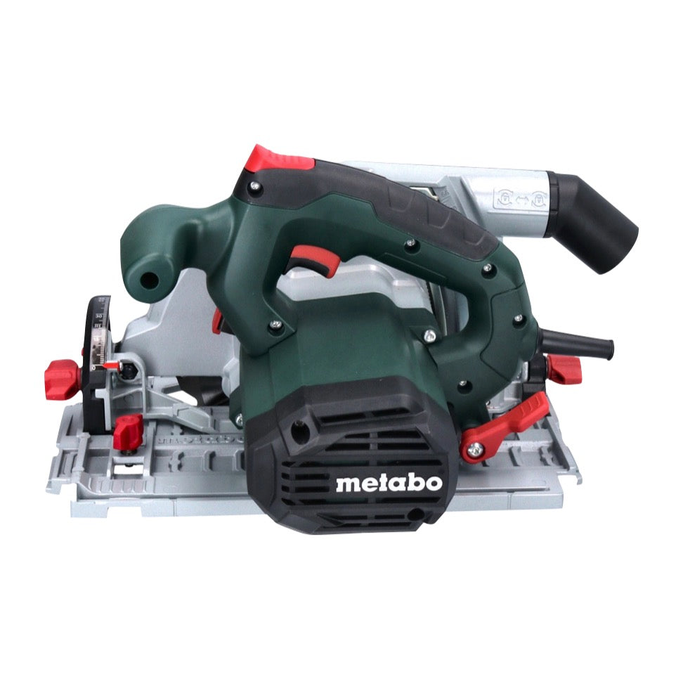 La scie circulaire à main KS 66 FS de Metabo est une scie circulaire à main robuste avec un indicateur de coupe clairement visible pour scier selon le marquage. La position 0° peut être facilement réajustée pour obtenir la plus grande précision de coupe possible. L'éjection des copeaux peut être contrôlée en tournant la buse d'aspiration en conséquence. Il y a une surface de préhension souple antidérapante dans la zone de préhension. La plaque de guidage est en aluminium moulé sous pression pour gagner du poids et permettre un travail plus long et sans fatigue. La plage de pivotement va de 0° à 47°. Metabo a une longue tradition d'outils de toutes sortes. Metabo est également membre du groupe CAS et propose donc une large gamme d'appareils compatibles et de batteries d'autres fabricants.