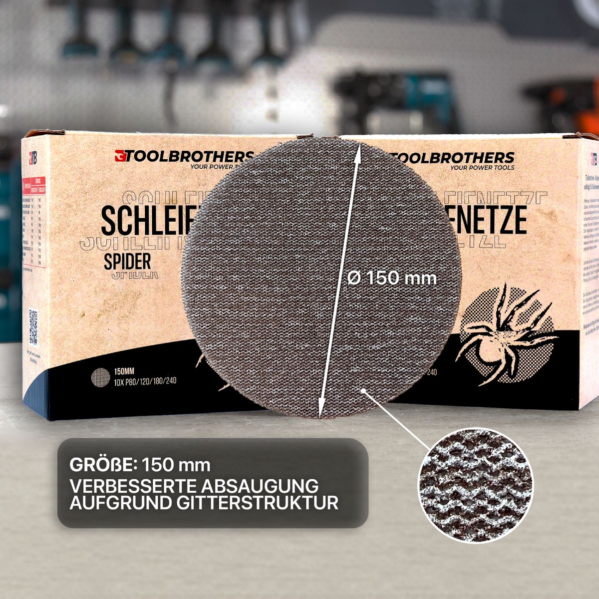 La ponceuse excentrique Metabo SXE 450 TurboTec impressionne par son réglage breveté à double circuit oscillant. Cela permet un réglage idéal pour un meulage fin et un enlèvement de matière maximal. Grâce à l'électronique Vario V, la vitesse peut être réglée en fonction du matériau. Grâce à la fonction Turbo Boost, une augmentation des performances à court terme peut être obtenue. De plus, il n'y a pas de marques de meulage lorsque la machine est posée. La poignée Softgrip est facile à utiliser et permet ainsi de longues journées de travail. Le roulement à billes anti-poussière assure une longue durée de vie de la machine. Le boîtier de roulement, qui est en aluminium moulé sous pression, est robuste et de haute qualité. Bien sûr, il est possible de connecter des dépoussiéreurs mobiles. Le patin de ponçage multi-perforé assure une aspiration efficace et une durée de vie plus longue de l'abrasif. Metabo est un fabricant d'outils haut de gamme, une longue tradition et des concepts sophistiqués caractérisent l'entreprise. La société Toolbrothers s'est déjà fait un nom en tant que portail de comparaison d'outils et propose désormais sur le marché une large sélection des abrasifs les plus couramment utilisés avec son kit de meulage à filet SPIDER. Qu'il s'agisse de bois dur ou tendre, de placage, de pierre, de peinture, d'aluminium, d'acier ou de dérouillage de l'acier, il existe le bon abrasif à mailles pour votre ponceuse orbitale aléatoire pour de nombreux domaines d'application. Les abrasifs à mailles de 150 mm de Toolbrothers vous offrent une alternative moins chère mais de haute qualité aux produits de marque plus chers.