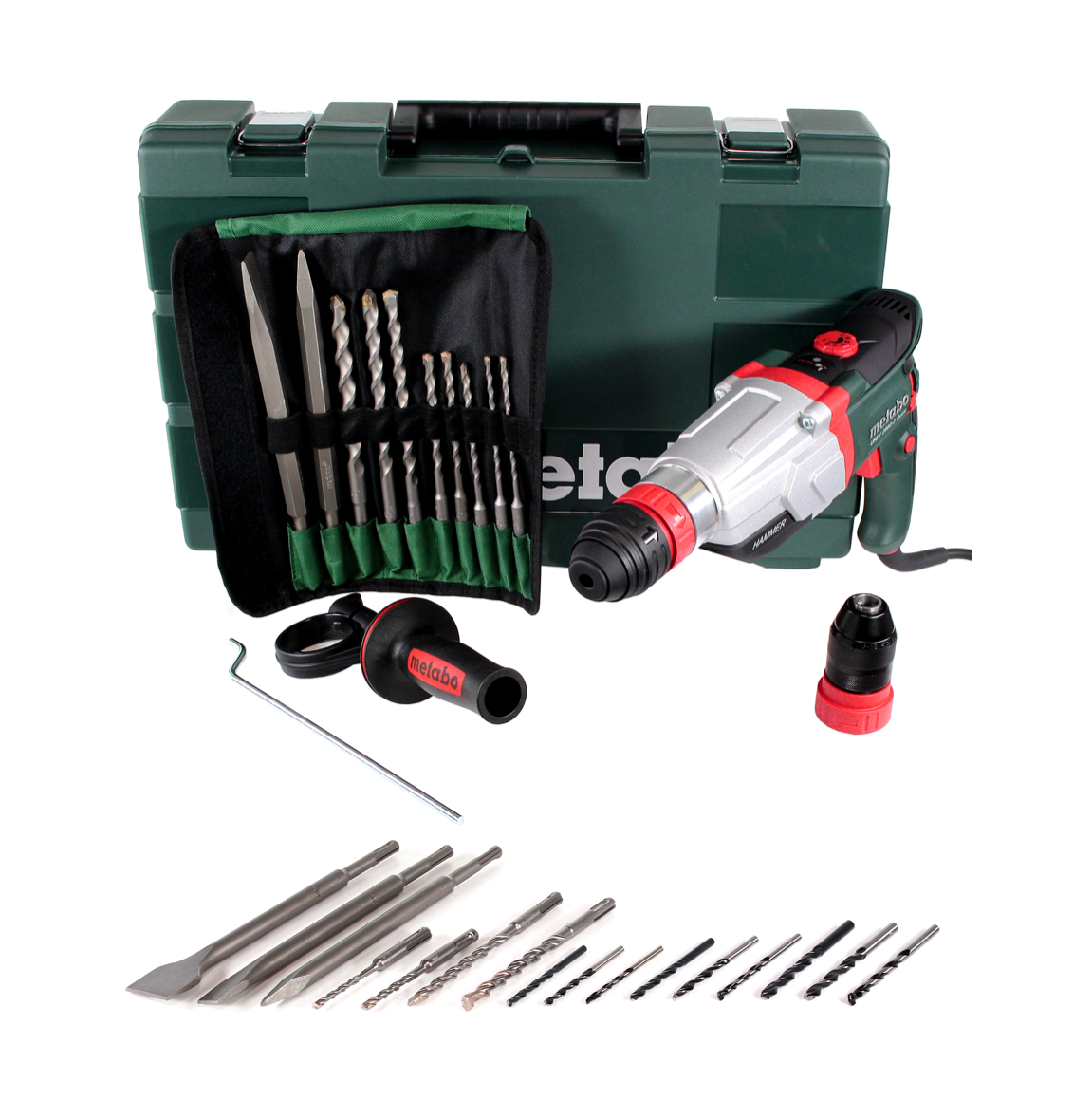 Metabo UHEV 2860-2 Quick Perforateur burineur 1100 W 3,4 J SDS Plus ( 600713510 ) + Coffret de transport + Foret et Burin - 26 pièces