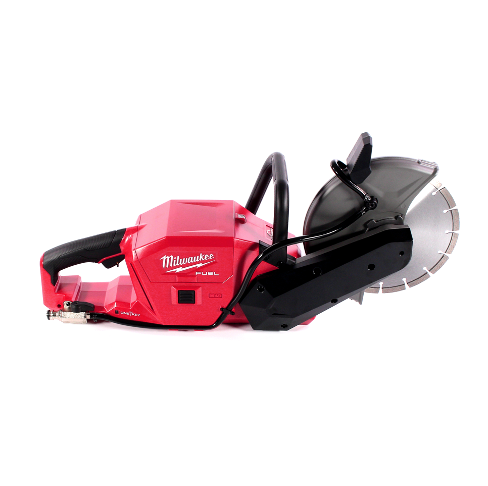 La meuleuse à tronçonner sans fil Milwaukee M18 FCOS230 est la première meuleuse à tronçonner sans fil 18 V de 230 mm avec suffisamment de puissance pour couper le béton armé et est néanmoins jusqu'à 50 % plus légère que les appareils à essence traditionnels. Grâce au fonctionnement sur batterie, aucun mélange essence/huile ne doit être mélangé et il est possible de travailler dans des locaux fermés sans fumées d'échappement gênantes. Le frein à disque RAPIDSTOP intégré garantit que l'outil s'arrête 50 % plus rapidement que les appareils sans cette fonction. Grâce aux faibles niveaux de vibrations, le travail avec cette tronçonneuse est doux et plus sain par rapport à d'autres appareils sans cette fonction. Grâce à l'indicateur de niveau de charge intégré, vous pouvez toujours voir le niveau de batterie de la tronçonneuse. Lorsque vous travaillez sur des surfaces poussiéreuses, l'alimentation en eau des deux côtés assure une fixation efficace de la poussière, ce qui protège les voies respiratoires de l'utilisateur et maintient la surface de travail propre et sûre. La dernière génération de moteur sans balais POWERSTATE est silencieuse, refroidit plus rapidement et assure ainsi une longue durée de vie à la tronçonneuse sans fil. De plus, l'électronique REDLINK PLUS permet une meilleure communication du système entre la batterie et l'outil, ce qui garantit des performances extrêmement solides. De plus, la technologie ONE KEY intégrée offre la possibilité de localiser vos outils et de mettre en place un programme d'inventaire basé sur le cloud avec localisation et protection contre le vol. La meuleuse à tronçonner sans fil est compatible avec le système modulaire de pulvérisation et de conduite d'eau M18 SWITCH TANK (non inclus). Milwaukee est un fabricant d'outils leader et traditionnel qui impressionne par sa haute qualité.