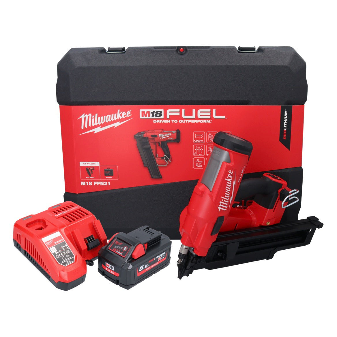 Milwaukee M18 FFN21-551C cloueur sans fil 18 V 50 - 90 mm Brushless + 1x batterie 5,5 Ah + chargeur + valise