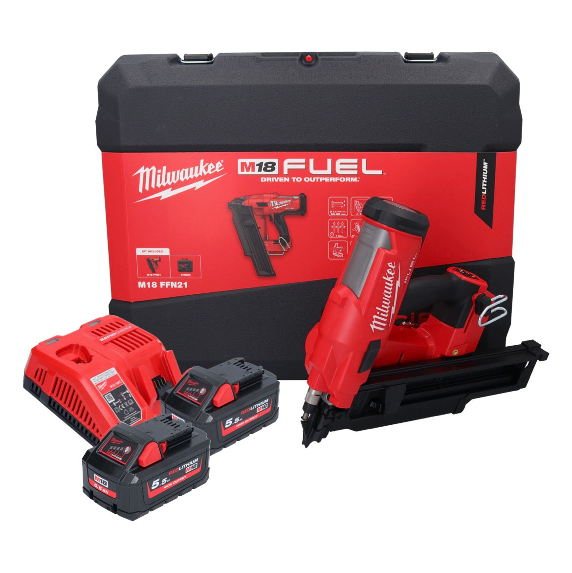 Milwaukee M18 FFN21-552C cloueur sans fil 18 V 50 - 90 mm Brushless + 2x batterie 5,5 Ah + chargeur + valise