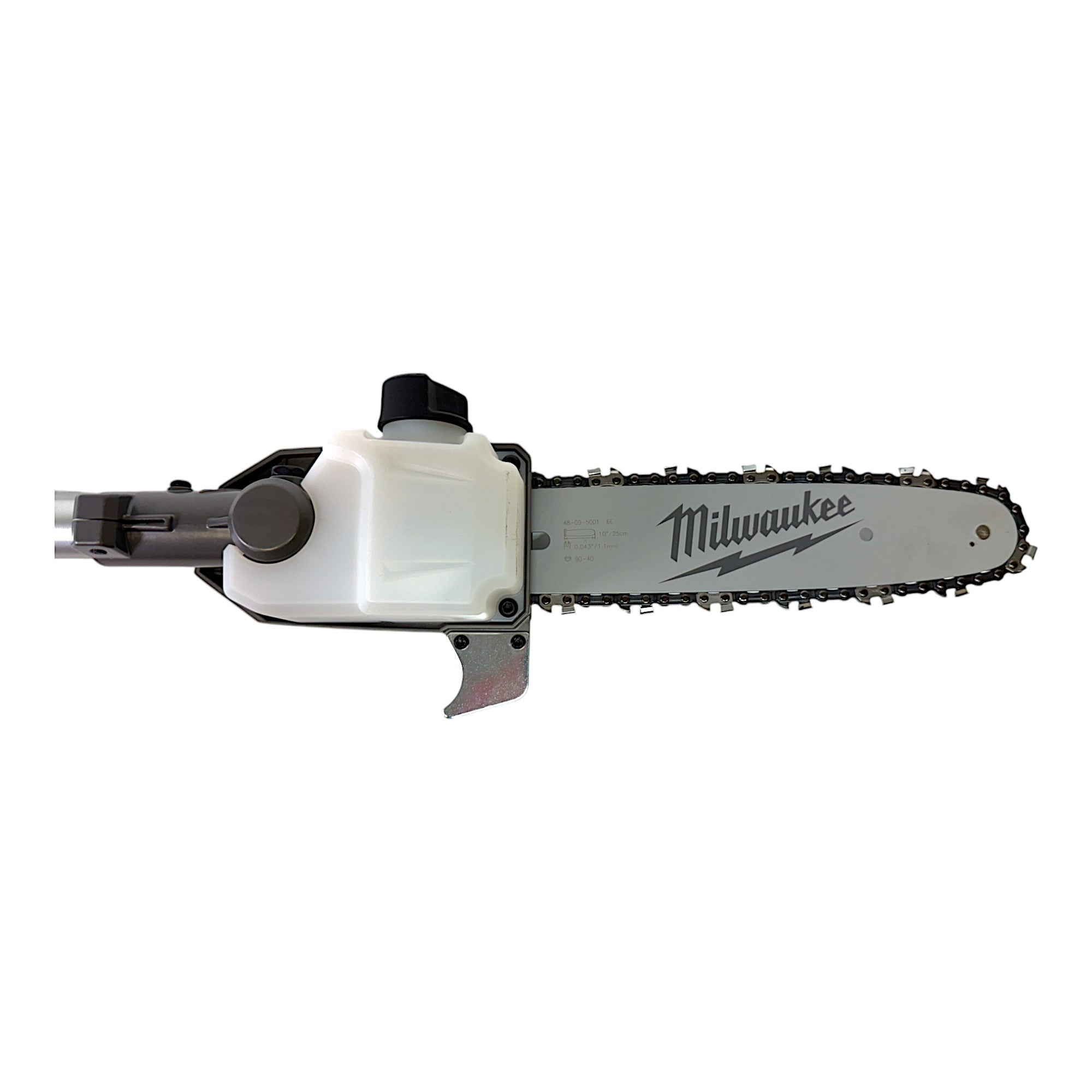 L'accessoire d'élagage Milwaukee M18 FOPH-CSA est le complément idéal du système M18 FUEL™ Outdoor Power Head QUIK-LOK™ et offre une flexibilité maximale pour l'élagage professionnel et les travaux de jardinage. Parfaitement adaptée à la coupe de branches au-dessus de la tête, elle permet un élagage efficace et sûr sans échelle. Équipée d'un guide de 254 mm et d'un système de lubrification automatique de la chaîne, l'élagueuse sur perche assure des coupes précises et fluides. L'accès latéral au tendeur de chaîne facilite l'ajustement de la chaîne, ce qui permet d'effectuer rapidement l'entretien et la tension. De plus, l'appareil dispose d'un crochet intégré qui facilite le retrait des branches coupées et augmente ainsi l'efficacité du travail. Grâce à la puissante technologie Milwaukee, il est possible de réaliser jusqu'à 150 coupes avec une batterie M18™ 8.0 Ah (non incluse) - idéal pour les travaux exigeants. Pour ceux qui ont besoin d'une portée encore plus grande, l'élagueuse peut être étendue avec l'accessoire d'extension de 91 cm, disponible séparément, pour atteindre facilement les branches situées en hauteur. Avec sa construction robuste, sa facilité d'utilisation et la qualité éprouvée de Milwaukee, l'élagueuse sur perche M18 FOPH-CSA est la solution parfaite pour les professionnels et les particuliers qui recherchent performance, sécurité et efficacité.