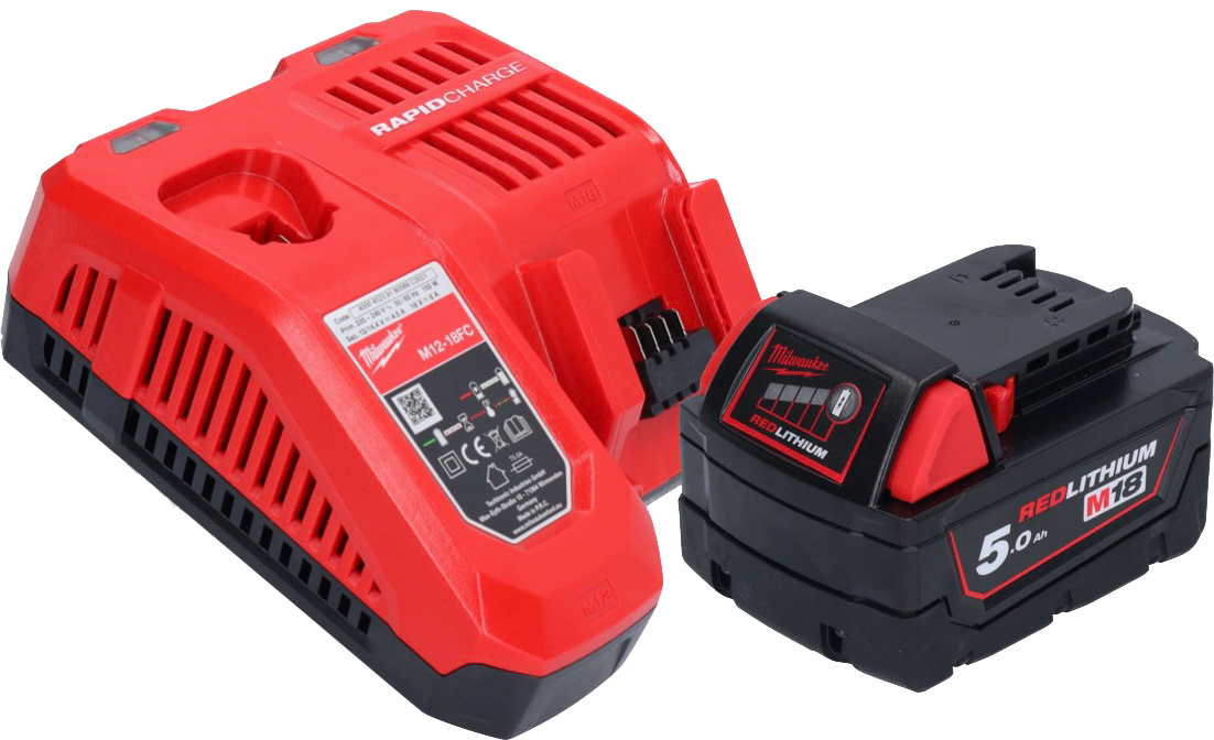 - 1x Batterie Milwaukee M18 B5 18 V / 5,0 Ah / 5000 mAh