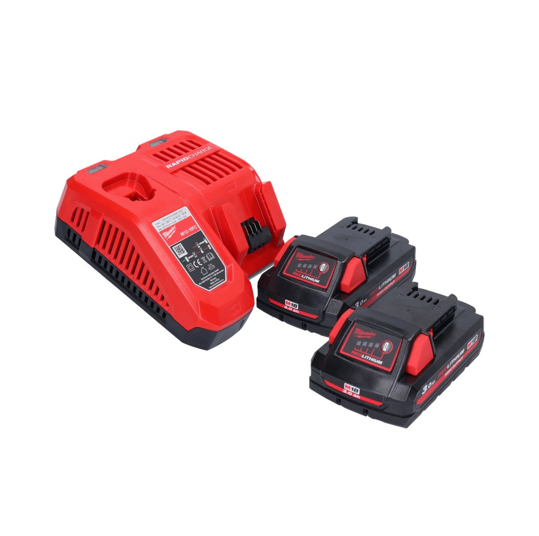 - 2 batteries Milwaukee M18 HB3 High Output 18 V 3,0 Ah Li-Ion