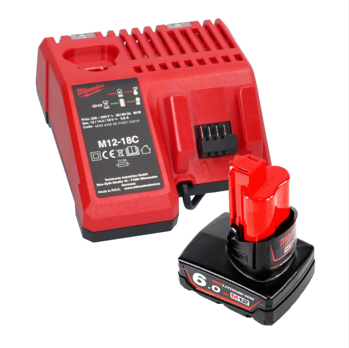- 1x Milwaukee M12 B6 12 V 6,0 Ah batterie