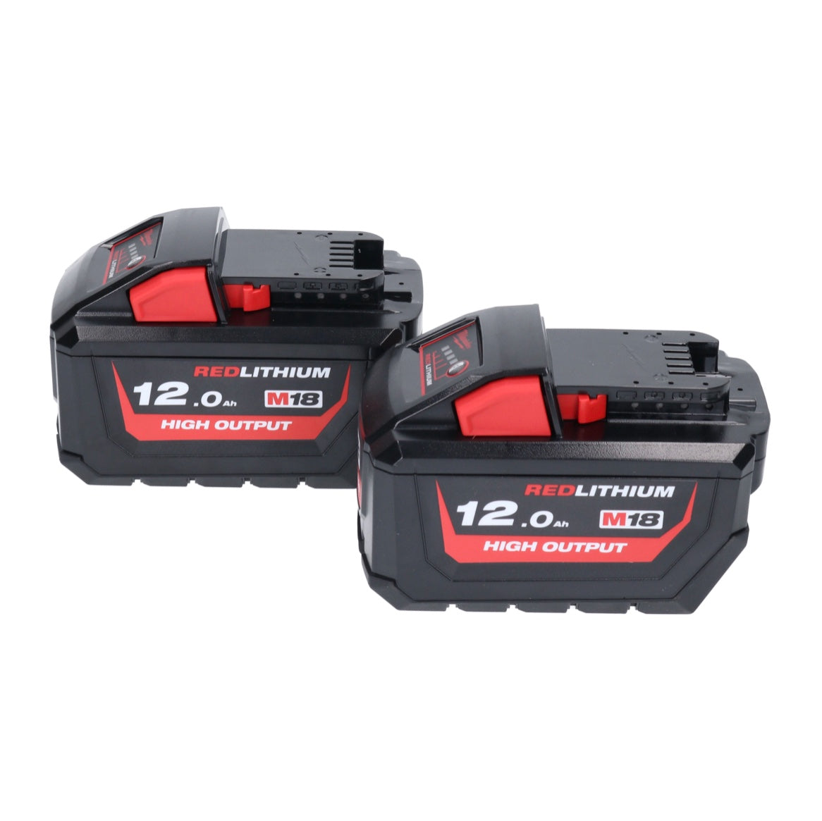 - 2x Batteries Milwaukee M18 High Output 12.0Ah / 12000mAh Li-Ion 18V avec indicateur du niveau de charge (4932464260)